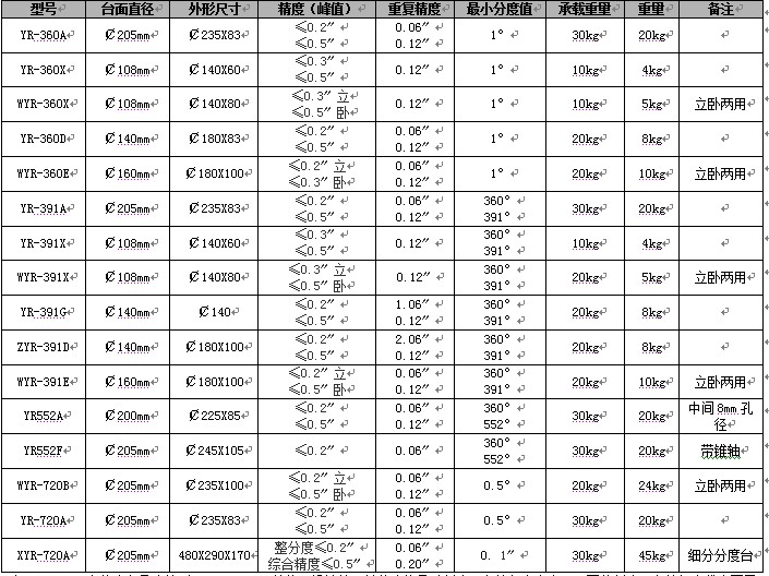 四、YR系列多齒分度臺(tái)技術(shù)規(guī)格: